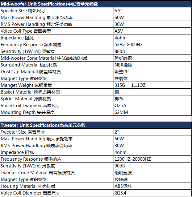 - MBQ DW-ME-1651 6.5寸兩分頻套裝揚(yáng)聲器